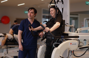 În cazul Luciei, protocolul standard de recuperare a inclus ședințe clasice de kinetoterapie, combinate cu diferite tehnologii inovative: Erigo, pentru stimularea musculară, și Lokomat, pentru reeducarea mersului. Erigo este un sistem robotizat utilizat pentru îmbunătățirea mobilității pacienților cu afecțiuni neurologice sau musculo-scheletale, care permite verticalizarea pacientului până la 90 de grade. În cazul Luciei, această tehnologie a fost importantă în primele săptămâni de terapie, atunci când corpul ei avea nevoie să se obișnuiască din nou cu postura verticală. Lokomat este un sistem robotizat care asistă pacientul în reînvățarea mersului. Acest dispozitiv îi oferă Luciei sprijin complet pentru mișcarea picioarelor, permițându-i o repetare controlată și sigură a pașilor, în condiții care simulează mersul natural.