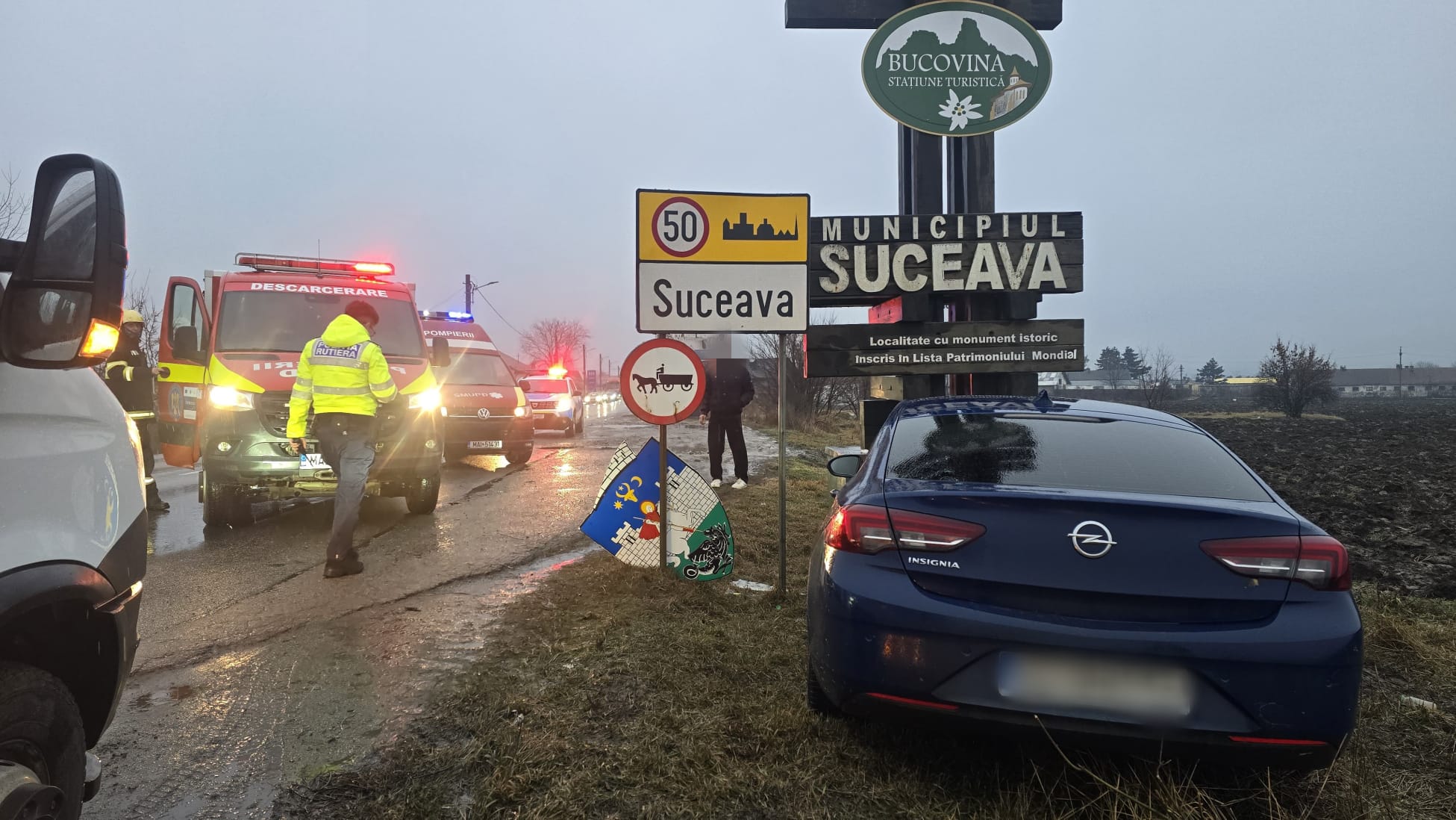 Un accident rutier a avut loc marți, la intrare în municipiul Suceava dinspre Rădăuți (DN2). Este vorba despre un autoturism intrat într-un indicator de delimitare a localității.